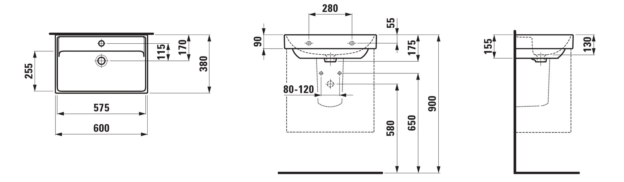SCALIDO Wandwaschtisch B: 600 T: 380 mm, weiß, ohne Beschichtung, mit 1 Hahnloch, mit Überlauf